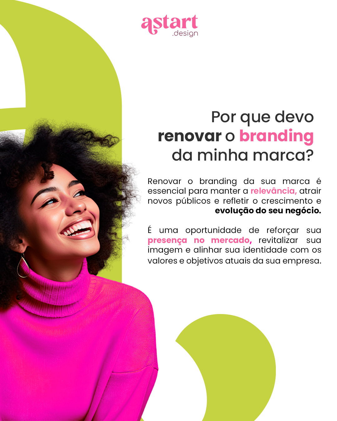 O principal objetivo do serviço de Design Gráfico da Astart Design é oferecer soluções visuais que maximizem o impacto das comunicações de nossos clientes. Trabalhamos para criar posts nas redes sociais que sejam envolventes e que capturem a essência da marca, além de desenvolver materiais gráficos como flyers, banners, e brochuras que reforcem a identidade visual. Também nos especializamos em design de apresentações corporativas, transformando informações complexas em layouts claros e visualmente atrativos, que ajudam a comunicar ideias de maneira eficaz e profissional.